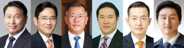 ![]() 최태원(왼쪽부터) SK그룹 회장, 이재용 삼성전자 회장, 정의선 현대자동차그룹 회장, 조현상 HS효성 부회장, 김동관 한화그룹 부회장, 정기선 HD현대 회장. |