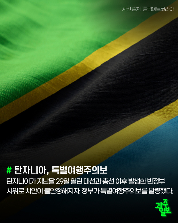 탄자니아가 지난달 29일 열린 대선과 총선 이후 발생한 반정부 시위로 치안이 불안정해지자, 정부가 특별여행주의보를 발령했다.