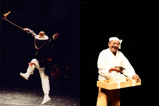 ![]() 이윤석 명인의 ‘말뚝이춤’(왼쪽)과 조오환 명인의 ‘엿타령’.<국립남도국악원 제공> |