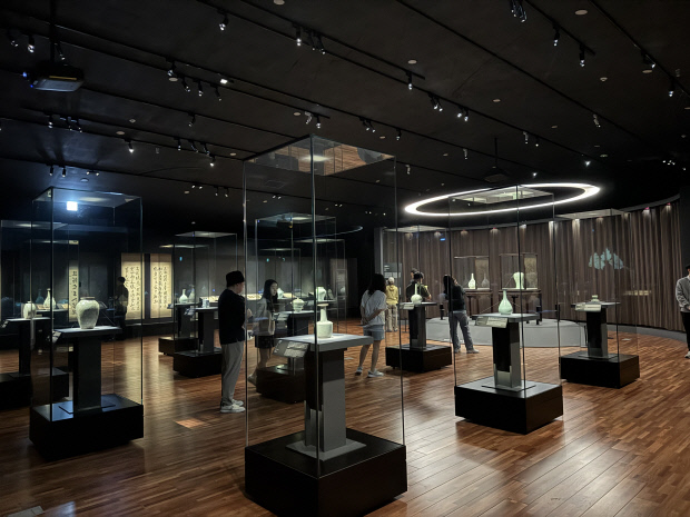 지하 1층의 상설전시실은  간송미술관의 대표작들을 만날 수 있는 공간이다. 전시장으로 들어서면 어두운 조명 아래 수 십 여 개의 유리 진열장에 놓인 국보와 보물이 관람객을 맞는다. 지난해 개관 기념전에서 선보인 신윤복의 ‘미인도’(내년부터 상설전시)는 아쉽게도 현재 관람할 수 없지만 전시실 한복판에 우뚝 서 있는 두 점의 국보급 도자가 시선을 사로잡는다. 고려 청자와 조선백자의 진수를 보여주는 ‘청자상감운학문매병’과 ‘백자청화철채동채초충난국문병’이다.