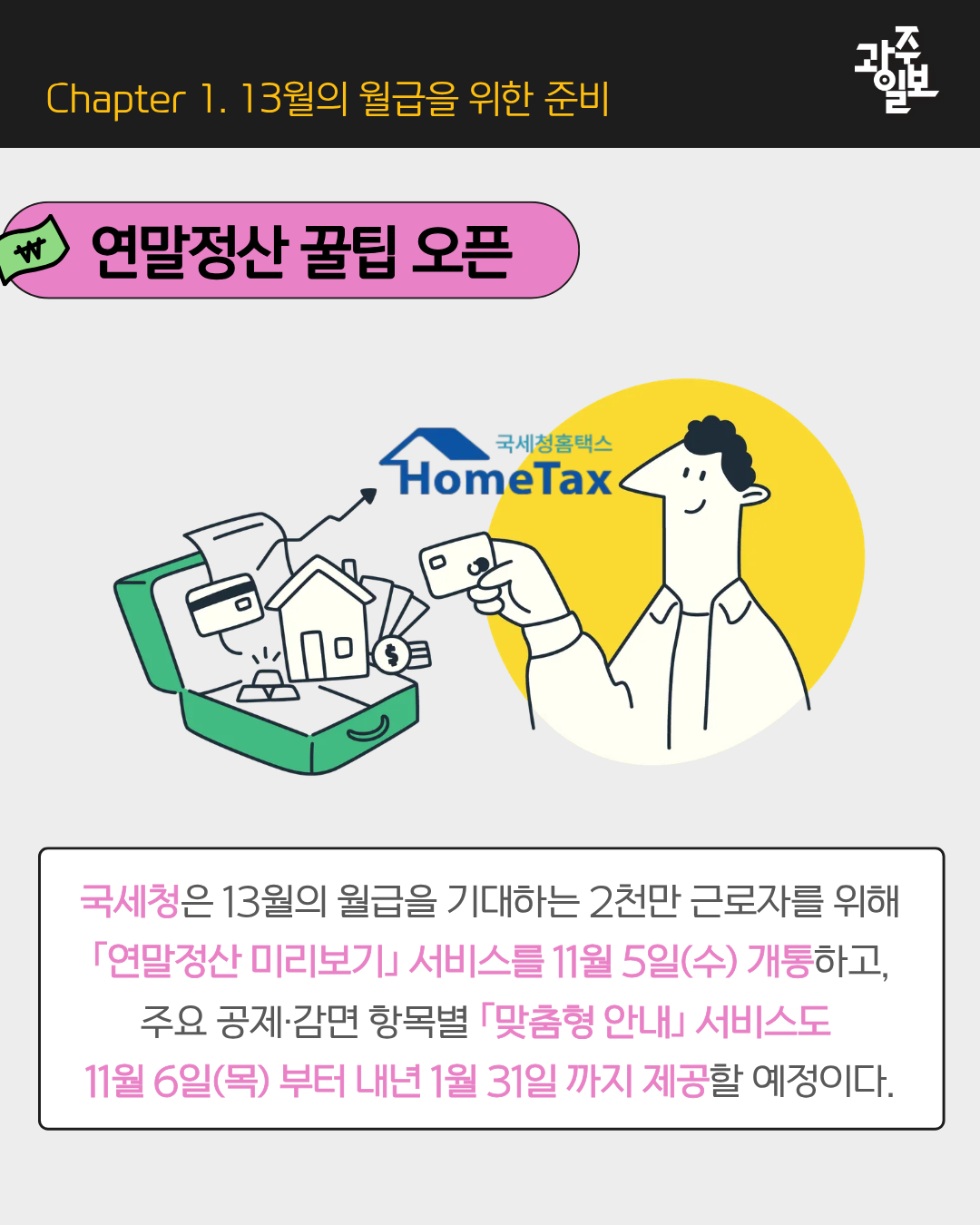 특히 올해는 무주택 근로자의 월세액 세액공제 안내 대상자를 지난해(8만명)보다 80% 늘린 15만명으로 확대했다.연말정산 관련 문의는 국세청 콜센터(국번 없이 126)에서 안내받을 수 있다.