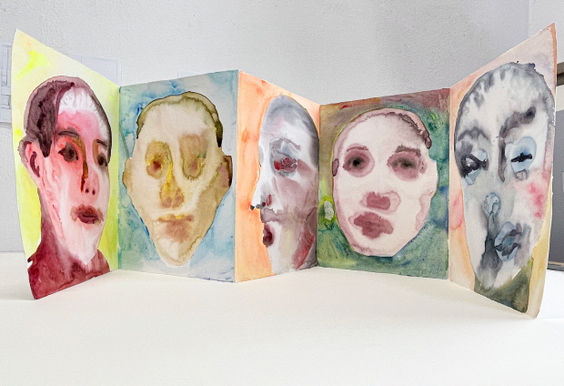 문선미 작가의 ‘I see you’는 초록의 머리카락을 길게 늘어뜨린 여성을 초점화했다. 왼쪽 눈을 머리카락이 덮은 모습은 보고 있으되 반만 보고 있다는 의미로 다가온다. 아름다운 꽃을 머리에 꽂고 가슴에 달았지만 전체적으로 분위기는 우울하다. 어쩌면 여성이 보는 대상은 대상 너머의 어떤 그림자와 같은 존재인지 모른다.