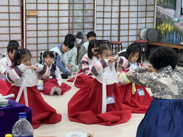 ![]() 지난 8일 전북 임실치즈테마파크에서 광주서구가족센터가 개최한 ‘2025 다문화가족 자녀 지원사업-진로설계지원 프로그램’이 진행됐다. 다문화 가정 자녀들이 한복을 입고 절하는 법을 배우고 있다. |