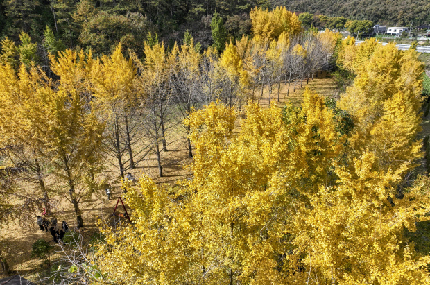 ![]() 11일 나주시 남평읍 은행나무 수목원의 은행잎들이 노랗게 빛을 발하며 가을날의 운치를 더하고 있다. /김진수 기자 jeans@ |