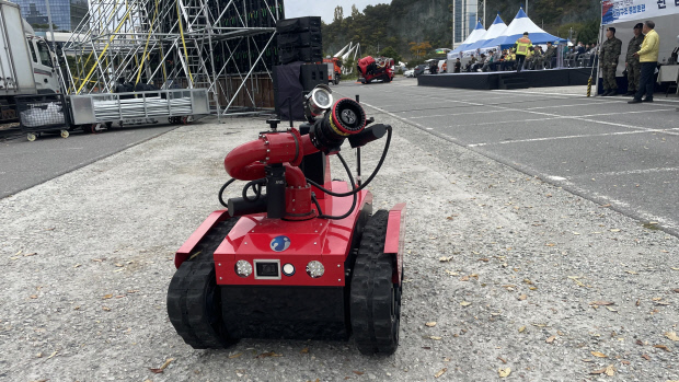 ![]() 이날 도심 및 건물 정찰에 투입된 소방 로봇. |
