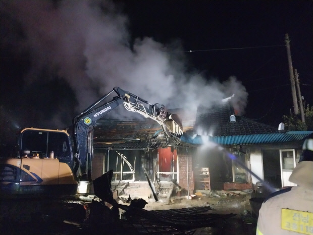 소방은 주택 뒤편 아궁이에서 남은 불씨가 주변 목재로 옮겨붙은 것으로 추정 중이다.