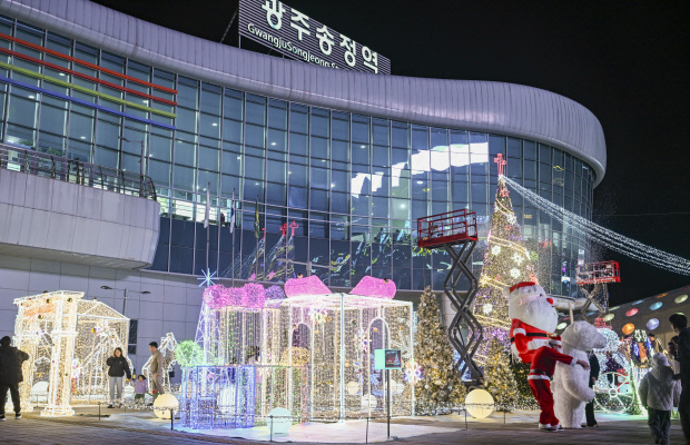 ![]() 광주송정역 광장에서 15일 열린 ‘2025 송정역 성탄트리 점등식 및 크리스마스 거리 전시회’에서 시민들이 화려한 빛으로 장식된 대형 성탄트리와 조형물 앞에서 사진 찍으며 추억을 만들고 있다. /김진수 기자 jeans@ |