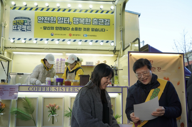 아침 커피 차 운행하며 노동자들에게 당부…노동자 안전 수칙 점검·실천 도와