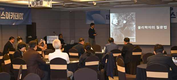 김 교수는 “물리학자의 질문법에 필요한 것은 질문을 들으면 바로 답하려 하지 말고 질문에 담긴 전제가 옳은지 먼저 확인하는 것”이라며 “인간의 몸은 원래 의자에 앉도록 설계되지 않았다”고 밝혔다. 그는 의자가 권력의 상징으로 시작됐고 19세기 산업혁명의 산물로서 이후 대량 보급됐다는 역사적 맥락을 설명하며 질문을 재구성하는 ‘사고의 전환’을 강조했다.