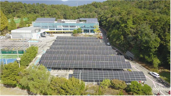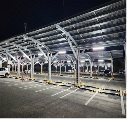 뜨거운 햇볕을 막아주는 차양막 기능을 겸한 태양광 패널은 이용객들에게 그늘을 제공해 주차 편의성을 높이는 동시에, 연간 601MWh의 친환경 전력을 생산해낸다.