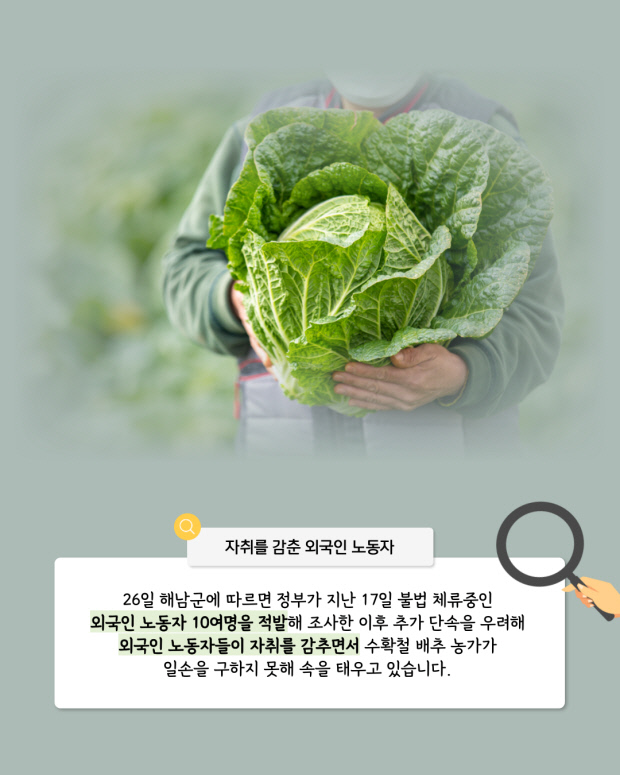 [오늘의 지면] 외국인 불법 노동자 단속에 일손 끊긴 해남 배추농가