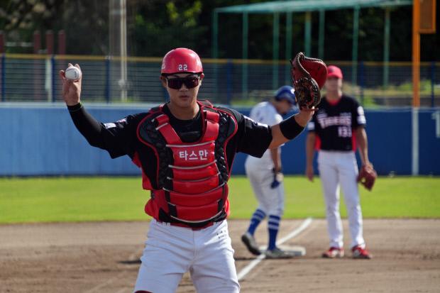 ![]() 팔꿈치 부상에서 벗어나 복귀 시즌을 보낸 KIA 포수 주효상이 새로운 안방 경쟁을 예고하고 있다. 지난 16일 오키나와 야카마 구장에서 진행된 삼성과의 마무리캠프 연습경기에서 타임을 요청하는 모습. |