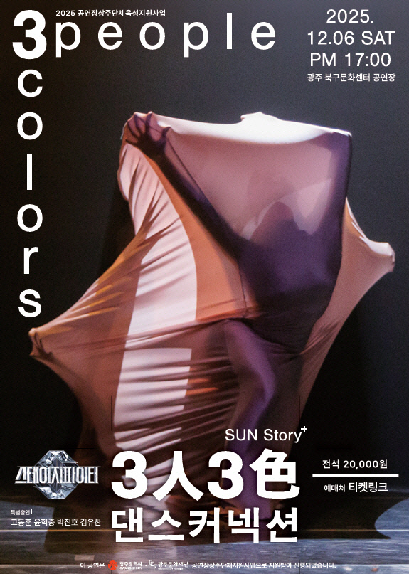 댄스컴퍼니 Sun&Friends의 ‘3인 3색-댄스 커넥션’이 오는 12월 6일 오후 5시 광주북구문화센터 공연장에서 관객들과 만난다.2025 공연장상주단체육성지원사업으로 마련된 이번 무대는 제31회 전국무용제 대통령상을 거머쥔 단체가 선보이는 신작이라는 점에서 기대를 모은다.