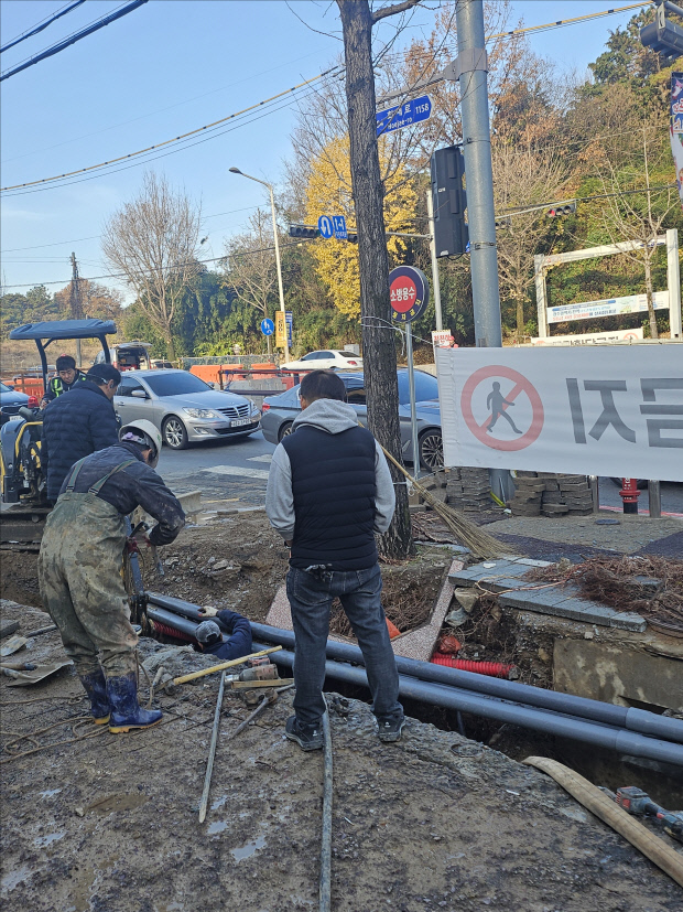 조사 결과 지하에 매설된 직경 400㎜ 관로가 파손돼 누수가 발생한 것으로 확인됐다.