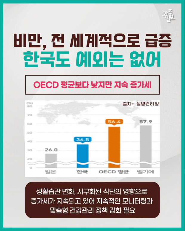 [광클] 우리나라 성인 3명 중 1명 비만, 10년간 30.8% 증가