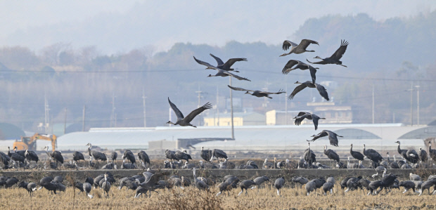 [오늘의포토] 순천만 찾아온 흑두루미