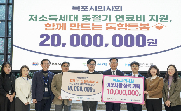 목포시의사회(회장 김명원)가 연말을 맞아 9일 저소득·위기가구 지원금 1000만 원, 통합돌봄 대상자 지원금 1000만원 등 총 2000만 원의 성금을 (재)목포복지재단에 기탁했다. <사진>