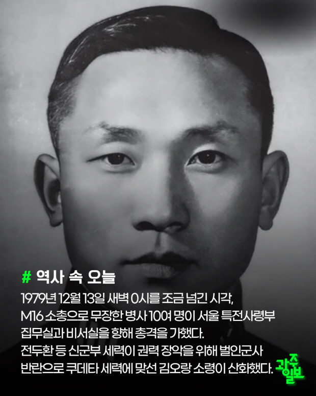 1979년 12월 13일 새벽 0시를 조금 넘긴 시각, M16 소총으로 무장한 병사 10여 명이 서울 특전사령부 집무실과 비서실을 향해 총격을 가했다. 전두환 등 신군부 세력이 권력 장악을 위해 벌인 군사 반란으로 쿠데타 세력에 맞선 김오랑 소령이 산화했다.