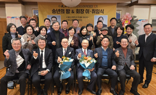 ![]() 광주일보 리더스아카데미 1기 원우회는 지난 15일 광주시 서구 풍암동 영빈관에서 원우 30여명이 참석한 가운데 ‘2025년 송년회’를 열었다. 이날 송년회에서는 박석인 코스모스 엔터테인먼트 대표의 이임식과 기노확 원우의 취임식도 함께 열렸다. <1기 원우회 제공> |