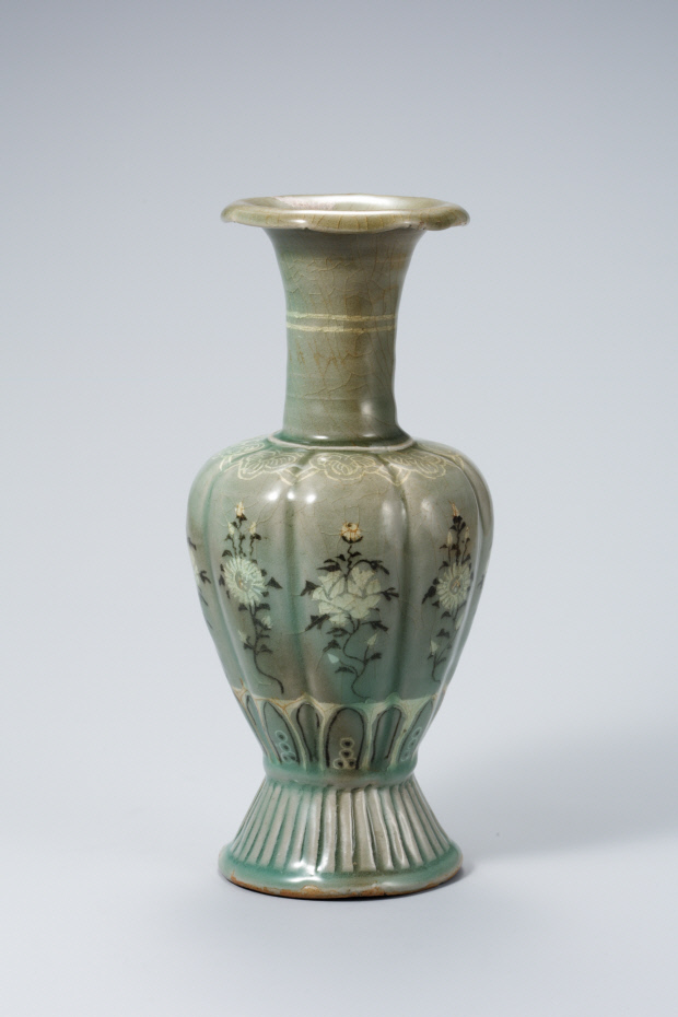 ![]() 청자 상감 모란 국화무늬 참외모양 병(국보) |