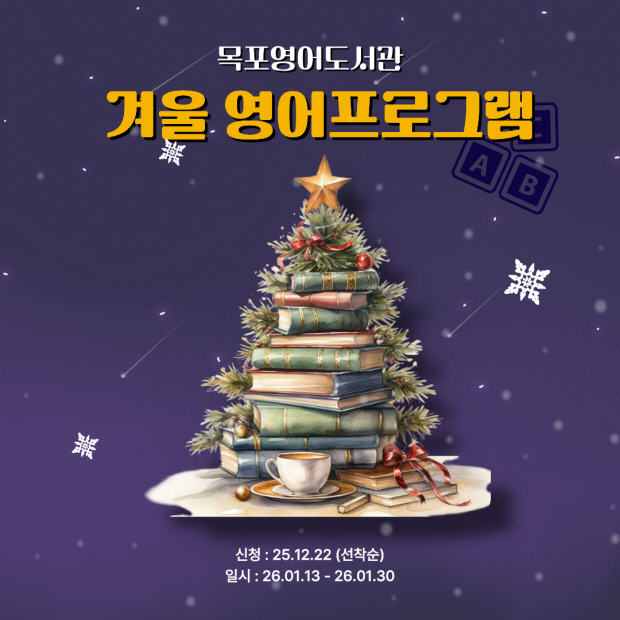 목포영어도서관이 22일부터 겨울 영어프로그램 신청을 선착순 모집한다. 이번 프로그램은 6~7세 어린이와 초등학생, 성인을 위한 강좌로 나눠 운영된다. 어린이·초등학생 대상으로는 세계의 겨울 문화를 자연스럽게 접할 수 있는 ‘세계 겨울 문화’ 프로그램과 함께 ▲어휘 학습 ▲영어 도서 읽기 ▲만들기 등의 활동과 연계한 ‘사부작사부작영어교실’이 운영된다. 성인을 위한 프로그램으로는 영화와 문학 작품을 통해 영어를 익히는 ‘시네마 잉글리시’ 등의 강좌가 준비돼 있다. 프로그램은 1월 13일부터 30일까지 진행되며 신청은 목포시 통합도서관 누리집을 통해 가능하다.
