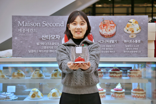 ![]() 광주신세계 본관 지하 1층 메종세컨드 팝업매장에서 직원이 산타모자 케이크를 선보이고 있다.<광주신세계 제공> |
