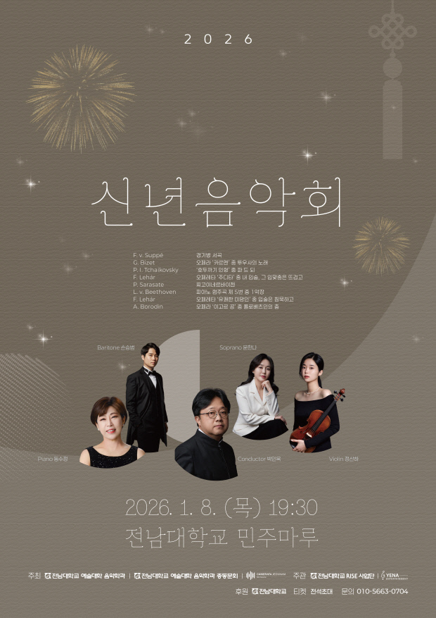 전남대예술대음악학과, 1월 8일 전남대 민주마루서 ‘2026 신년음악회’