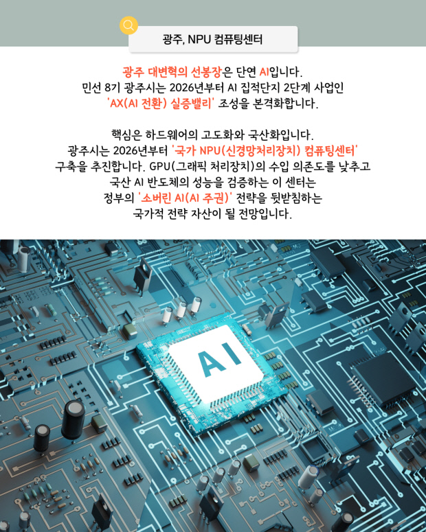광주 대변혁의 선봉장은 단연 AI입니다. 민선 8기 광주시는 2026년부터 AI 집적단지 2단계 사업인 ‘AX(AI 전환) 실증밸리’ 조성을 본격화합니다.