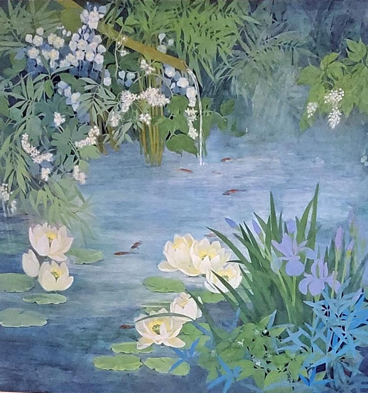 ‘정중동’은 우리의 전통그림을 세련된 현대적 감각으로 덧입혀 새롭게 재구성한 느낌이다. 잔잔한 호수에 드리워진 연꽃, 수초, 다양한 풀들은 제자리를 차지하면서도 전체의 생명체 구조속에 질서 있게 편입돼 있다.
