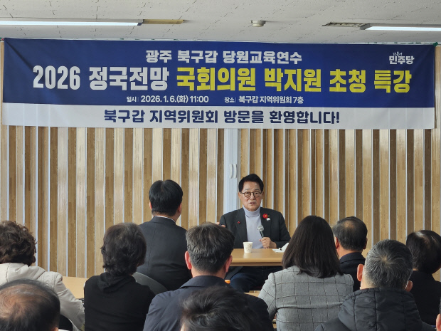 박 의원은 이날 오전 11시 광주시 북구 동문대로 동강빌딩7층 더불어민주당 광주북구갑 지역위원회 사무실에서 열린 ‘2026 정국 전망’ 초청 특강 연사로 나서 최대 지역 현안인 시도 통합과 당 혁신 방안에 대해 이같이 밝혔다. 이 행사는 정준호(광주 북구갑)의원이 주최했다.