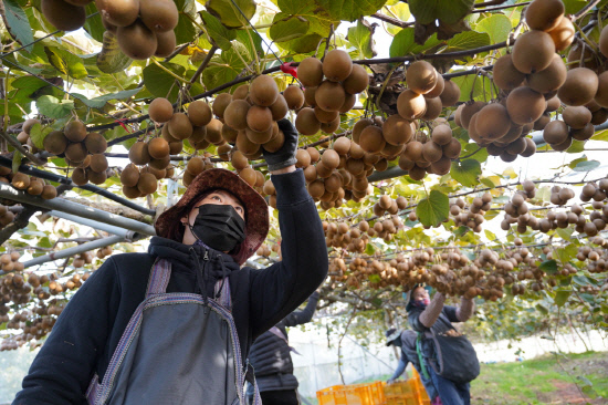![]() 골드키위 품종 중 하나인 ‘해금’의 상표권 등록 문제로 키위 농가들이 골머리를 앓고 있다. 해남의 한 키위 농가에서 해금골드키위를 수확중인 모습. <광주일보 자료사진> |