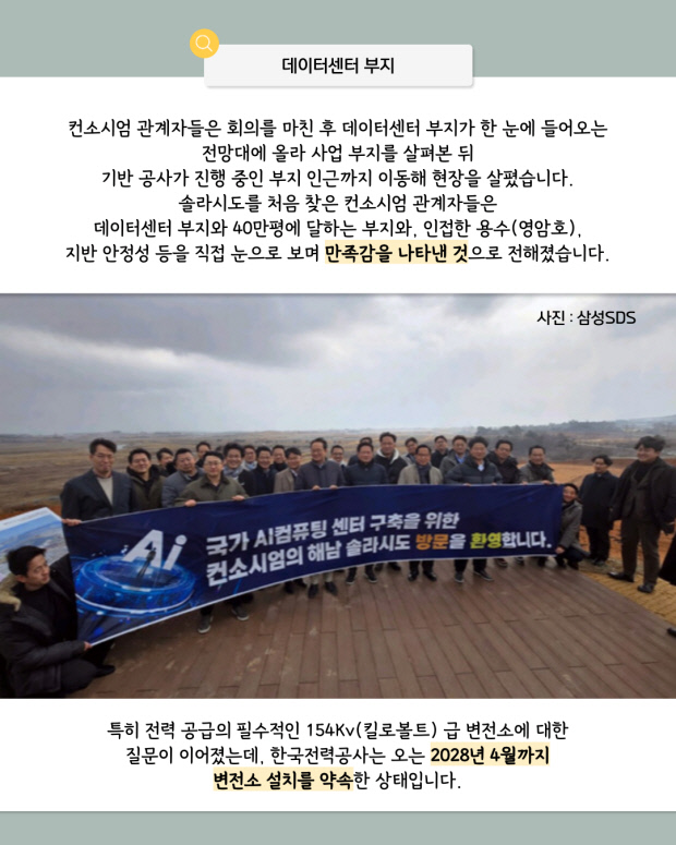 [오늘의 지면] 삼성SDS 컨소시엄 관계자 해남 방문…데이터센터 건립 예정지 시찰·점검