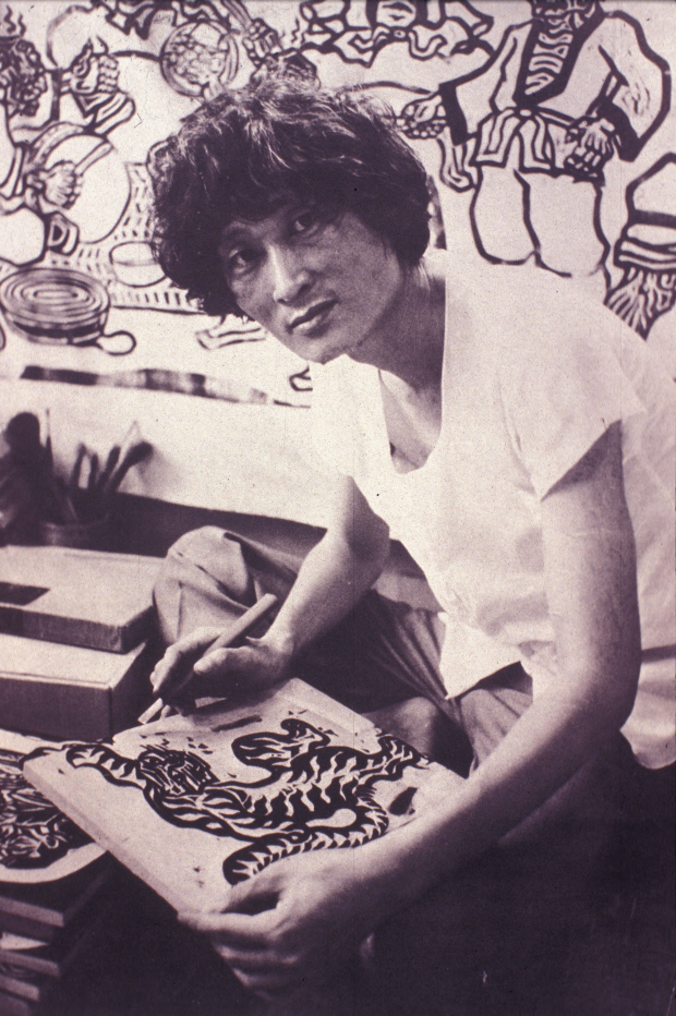 그의 판화는 1980년대 시집이나 소설집 표지에서 자주 볼 수 있었다. 판화에 어느 정도 관심이 있는 독자라면 아니 큰 관심이 없는 이들도 출판물 등에서 한번쯤은 봤을 것도 같다. 그는 한국 민중미술운동의 상징적인 작가로 80년대 활발한 활동을 펼쳤으며 ‘현실동인’을 비롯해 ‘현실과 발언’ 등 민중미술 단체 창립에 참여했다. 한마디로 그는 민중미술을 대변하는 대표적인 작가 가운데 한명이었다.