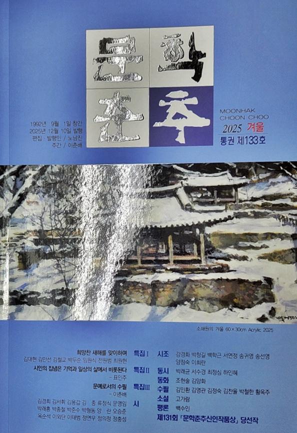 이밖에 제131회 ‘문학춘추시인작품상’ 당선작, 심사평 등도 소개돼 있다.