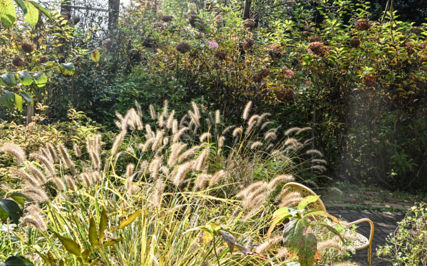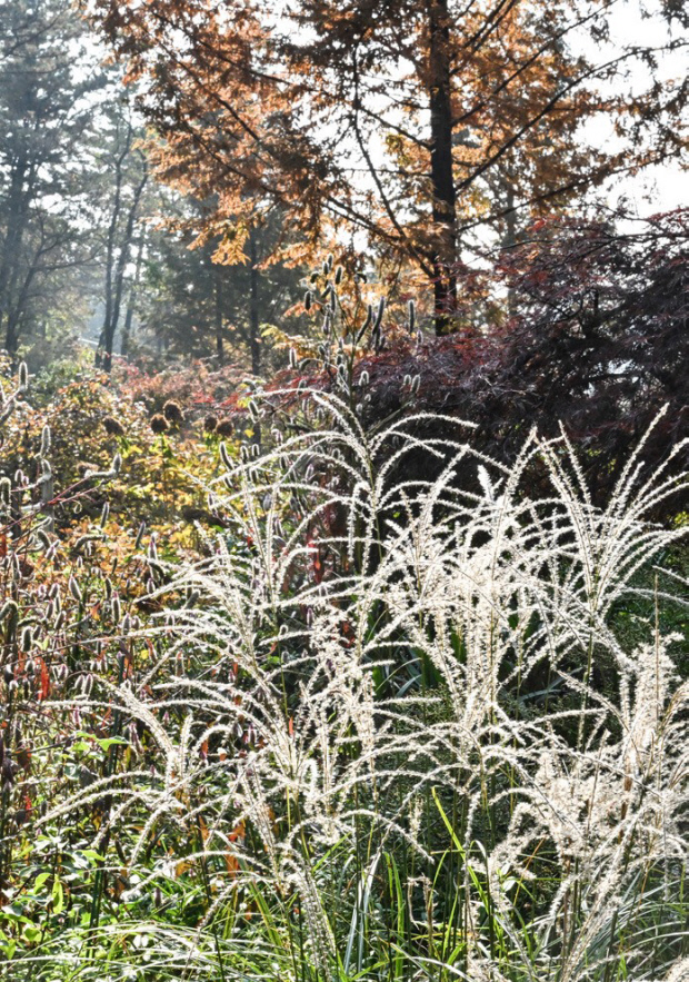 ![]() 죽화경에 식재된 야생초가 초겨울 햇빛에 반짝이고 있다. |