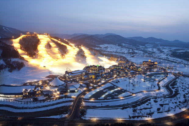 ![]() 해가 저물어 불 밝힌 알펜시아 스키장 야간 풍경이 아름답다. <알펜시아 리조트 제공> |