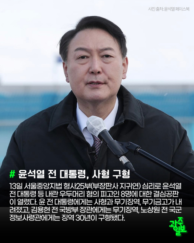 13일 서울중앙지법 형사25부(부장판사 지귀연) 심리로 윤석열 전 대통령 등 내란 우두머리 혐의?피고인 8명에 대한 결심공판이 열렸다. 윤 전 대통령에게는 사형과 무기징역, 무기금고가 내려졌고, 김용현 전 국방부 장관에게는 무기징역, 노상원 전 국군정보사령관에게는 징역 30년이 구형됐다.