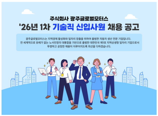 20일 GGM에 따르면 지난 19일 마감된 2026년 1차 기술직·일반직 신입·경력 채용에 1596명이 지원하며 평균 경쟁률 34대 1을 기록했다.
