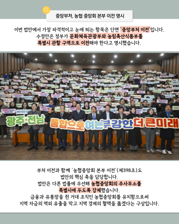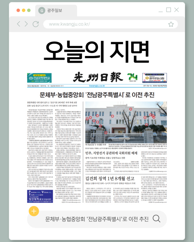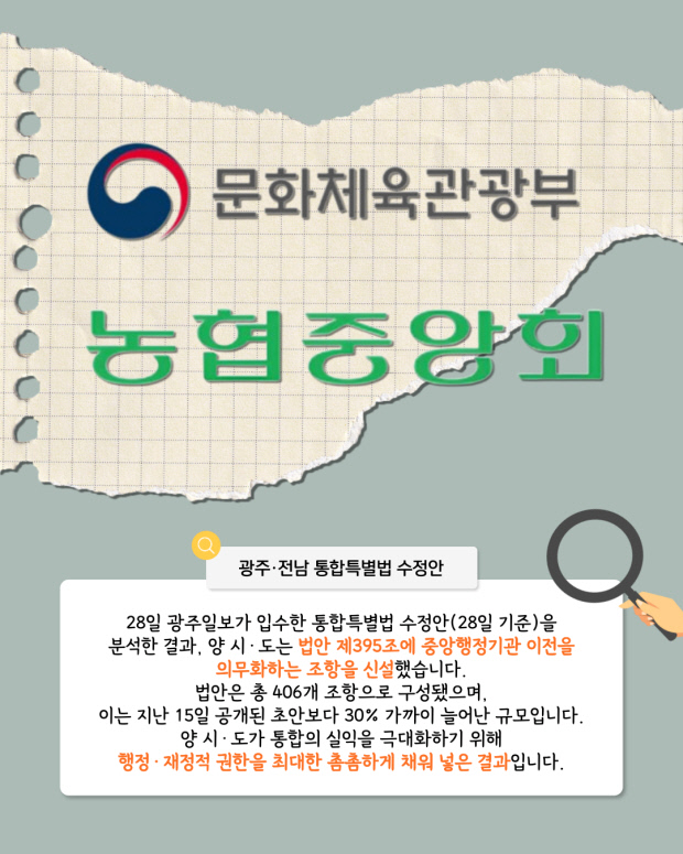 [오늘의 지면] 광주·전남 특별시 법안에 문체부·농협중앙회 이전 명시