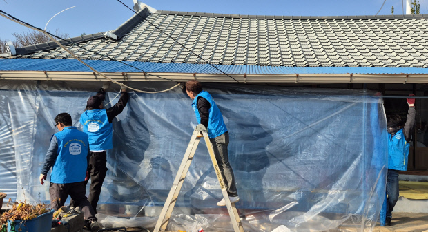 ![]() 우리동네 복지기동대원들이 위기 가구를 찾아 한파 대비 바람막을 설치해주고 있다. 〈전남도 제공〉 |