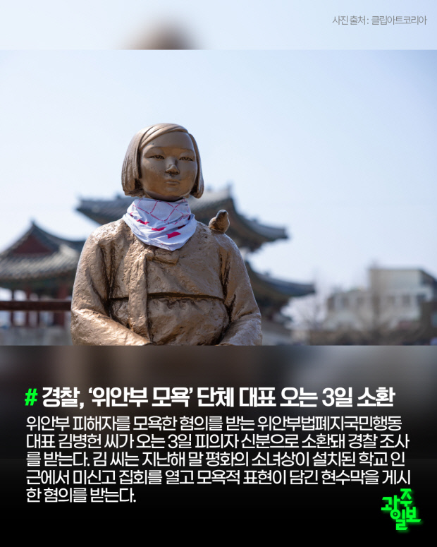 위안부 피해자를 모욕한 혐의를 받는 위안부법폐지국민행동대표 김병헌씨가 3일 피의자 신분으로 소환돼 경찰 조사를 받는다. 김 씨는 지난해 말 평화의 소녀상이 설치된 학교 인근에서 미신고 집회를 열고 모욕적 표현이 담긴 현수막을 게시한 혐의를 받는다.