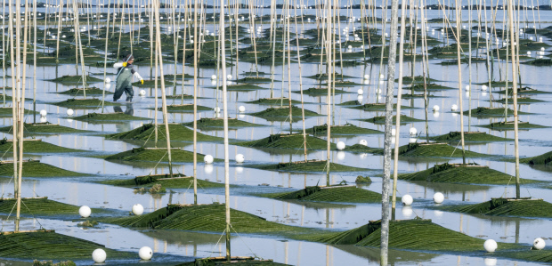 입춘을 하루 앞둔 3일 장흥군 대덕읍 옹암리 앞바다 매생이 양식장에서 어민들이 물때에 맞춰 겨울철 별미이자 남도의 대표적 무공해 식재료인 매생이를 수확하고 있다. /김진수 기자 jeans@kwangju.co.kr