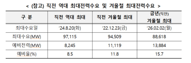 이는 직전 겨울철 최고치인 2022년 12월 23일 9만 4509MW에는 못미치지만, 올겨울 최고 기록인 지난 2일 8만 8618MW는 뛰어넘었다.