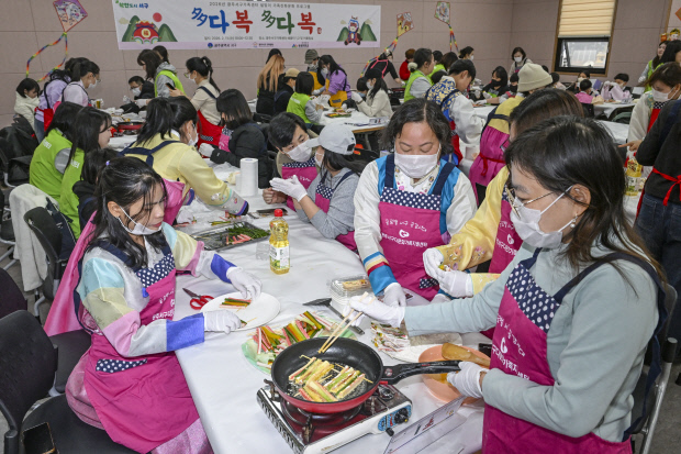 ![]() 11일 오전 광주시 서구가족센터에서 열린 설맞이 ‘다복다복’ 프로그램에 참여한 다문화가족들이 정성스럽게 명절 음식인 산적을 부치며 한국의 전통 음식 문화를 체험하고 있다. /김진수 기자 jeans@kwangju.co.kr |