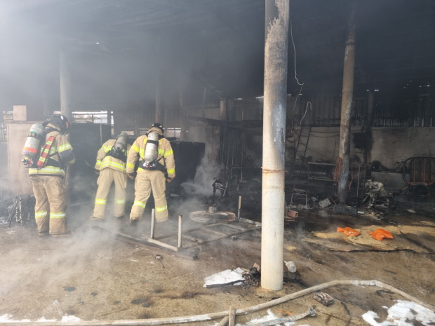 또 창고 280㎡와 농기계 3대 등이 불에 타 소방추산 2358만여원의 재산피해가 발생했다.