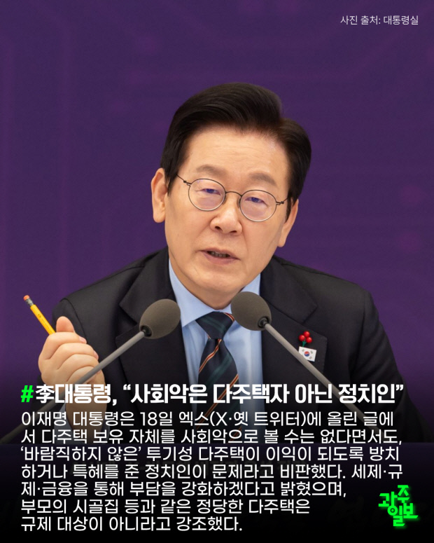 # 李대통령, “사회악은 다주택자 아닌 정치인”
