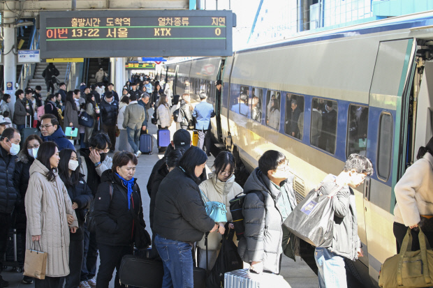 ![]() 설 연휴 마지막 날인 18일 오후 광주 광산구 광주송정역 승강장에서 고향에서 명절을 지낸 시민들이 일상으로 돌아가기 위해 서울행 열차에 탑승하고 있다. /김진수 기자 jeans@kwangju.co.kr |