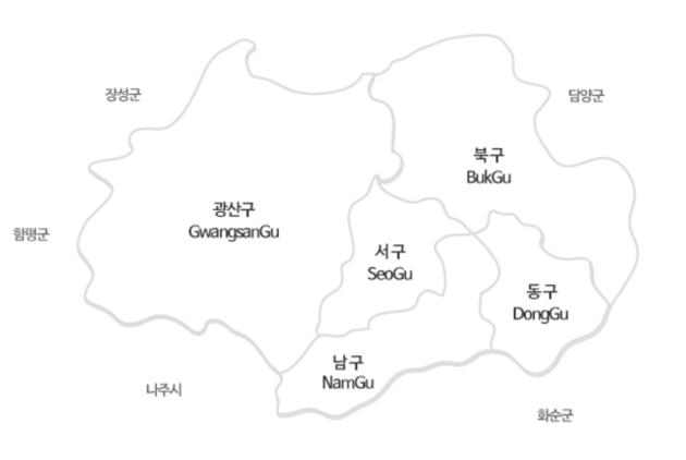 ![]() 광주 행정구역구분 지도. <광주시청 홈페이지 캡처> |