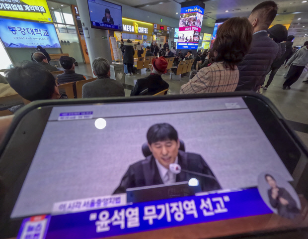 ![]() 19일 오후 광주 서구 광천동 버스터미널 대합실에서 시민들이 12·3 비상계엄 관련 내란 우두머리 혐의로 기소된 윤석열 전 대통령에 대한 1심 선고공판 TV 생중계를 시청하고 있다. /김진수 기자 jeans@kwangju.co.kr |