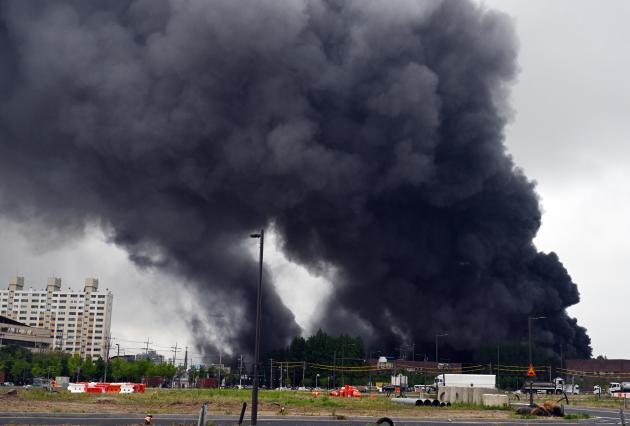![]() 지난해 5월 금호타이어 광주공장 화재 당시, 검은 연기가 도심 하늘을 뒤덮고 있는 모습. <광주일보 자료사진> |